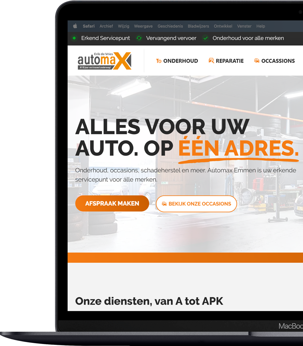 Een snelle, nieuwe website voor de toekomst van Automax Emmen.